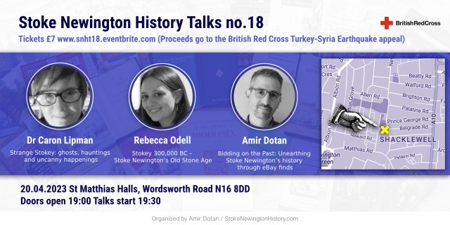 90 people attended the 18th Stoke Newington History Talks event in St Matthias Halls and it was a great evening with talks about local ghost stories, the area’s pre-historic past and rare archeological finds and my talk about local history items I got on eBay.