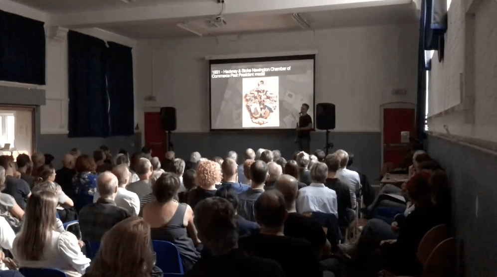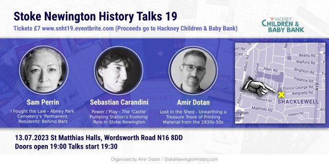 Close to 100 people attended the 19th Stoke Newington History Talks event in St Matthias Halls to hear about the transformation of the ‘Castle’ Pumping Station into a climbing centre, the lives of three social campaigners who were imprisoned for their actions and are buried in Abney Park Cemetery and finally, to catch a glimpse of a treasure trove of print material from the 1930s-50’s that was salvaged from a former local print shop.