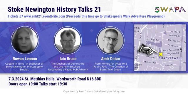 The first Stoke Newington History Talks event of 2024 had a full house, generating £643 for Shakespeare Walk Adventure Playground, bringing the total raised for 13 charities in the last 14 events to £8,789.