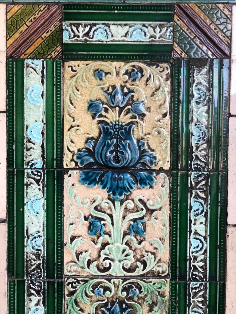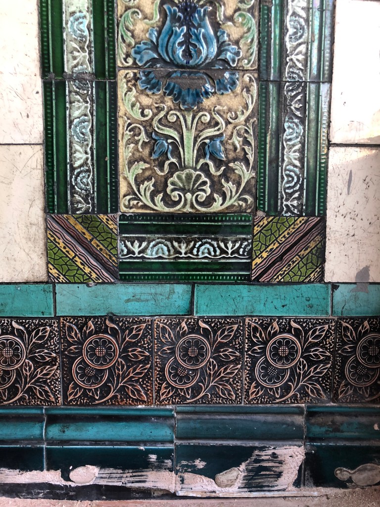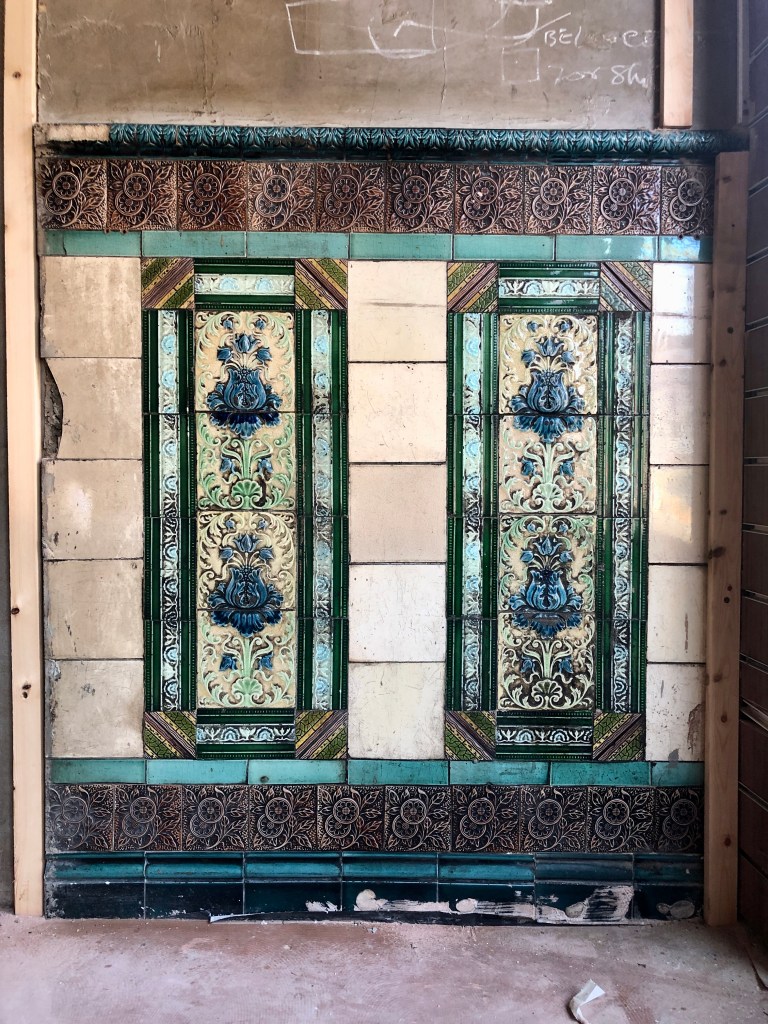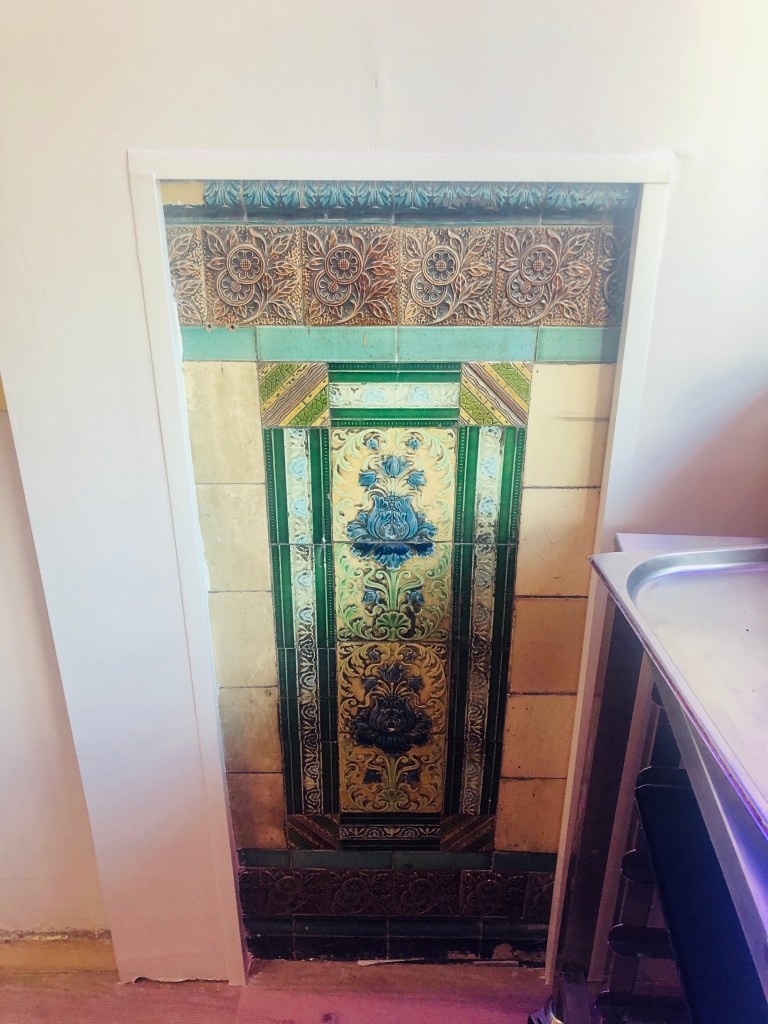 The tiles were covered during the refurbishment, but the owners changed their minds following comments on social media after I expressed my disappointment that they wouldn’t be visible. Thankfully, they decided to make half of the section part of the new interior. The tiles are due to be covered with a transparent protective screen soon.