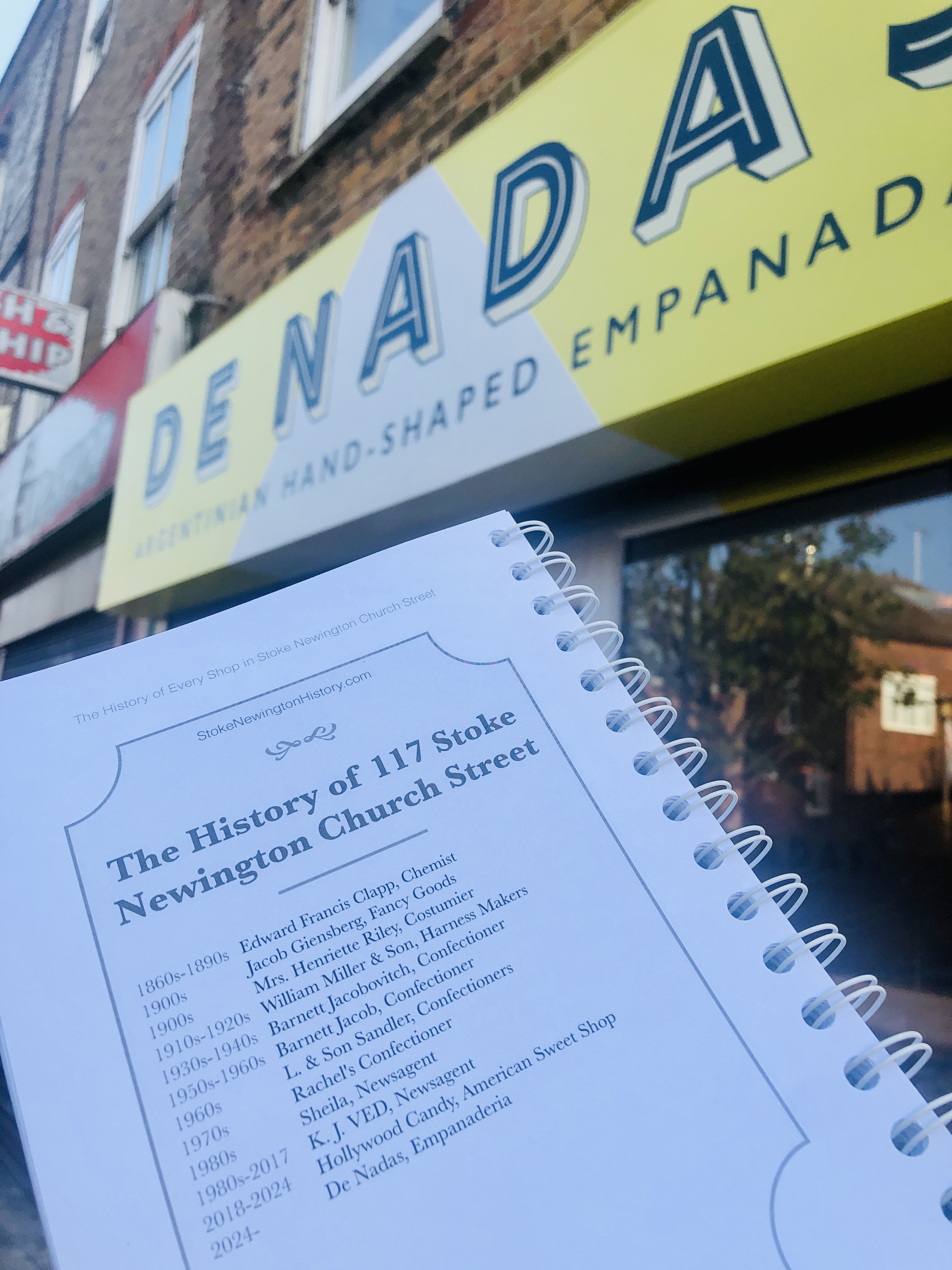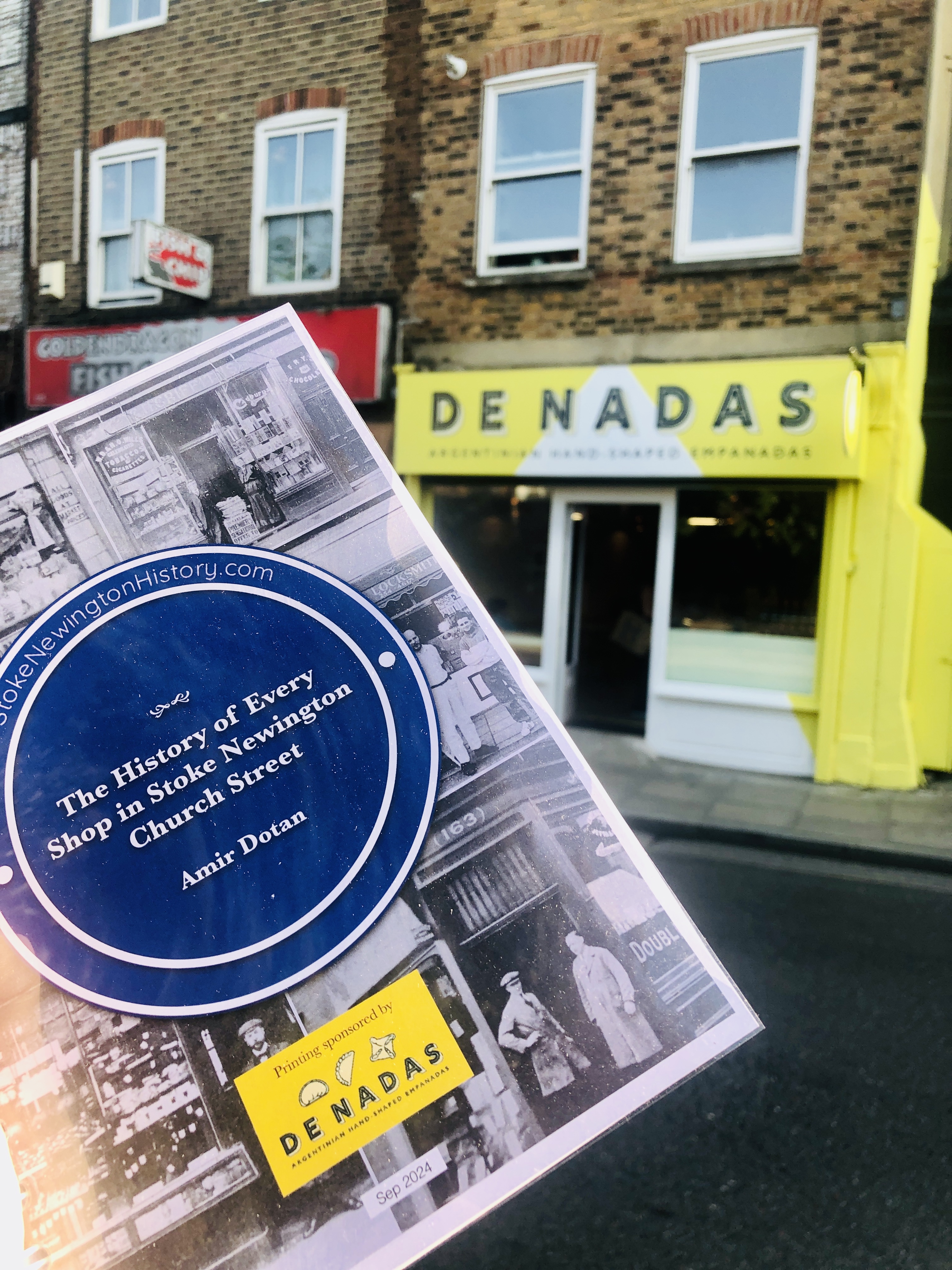 De Nadas kindly sponsored 25 copies of my book, which documents the history of every shop in Stoke Newington Church Street to giveaway to people who attended the ticketed talk, as part of opening event, which afterwards saw 300 free empanadas given to people who formed a long queue outside from 6pm.