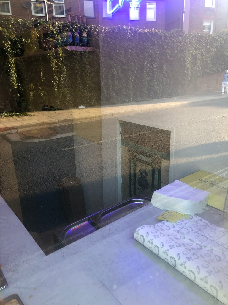 The small section of decorative tiles next to the shop window, which an architect I consulted dated to the late 19th century, was uncovered in July 2024 as the former sweet shop was stripped of its interior. The shop was a chemist in the 1860s–1890s and a fancy goods shop from 1900. I believe it’s more likely the tiles were part of the interior of the fancy goods shop rather than the chemist. The ground floor was originally residential, and I did consider the possibility that these were porch tiles from when the house’s door was there, but that would date them to the early-mid 19th century. Given their approximate age, this seems less likely, though I’m tempted not to rule it out completely.