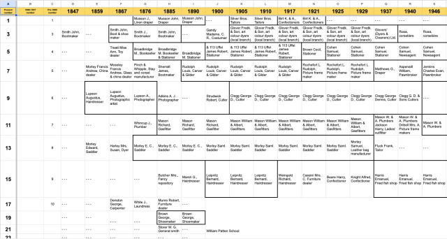 A comprehensive study tracking the history of every shop on the street since 1847, documenting the various businesses that have occupied each property over time.