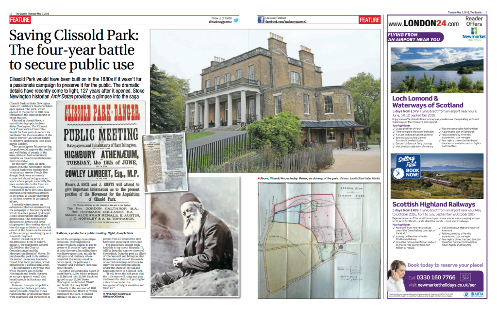 - 05.05.2016 – Hackney Gazette: Saving Clissold Park: The four-year battle to secure public use