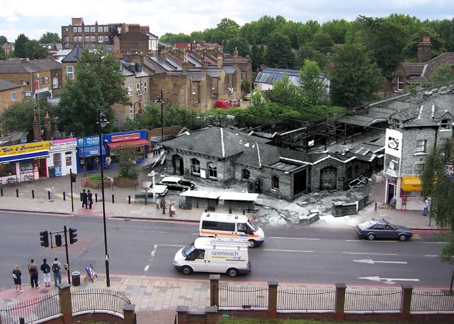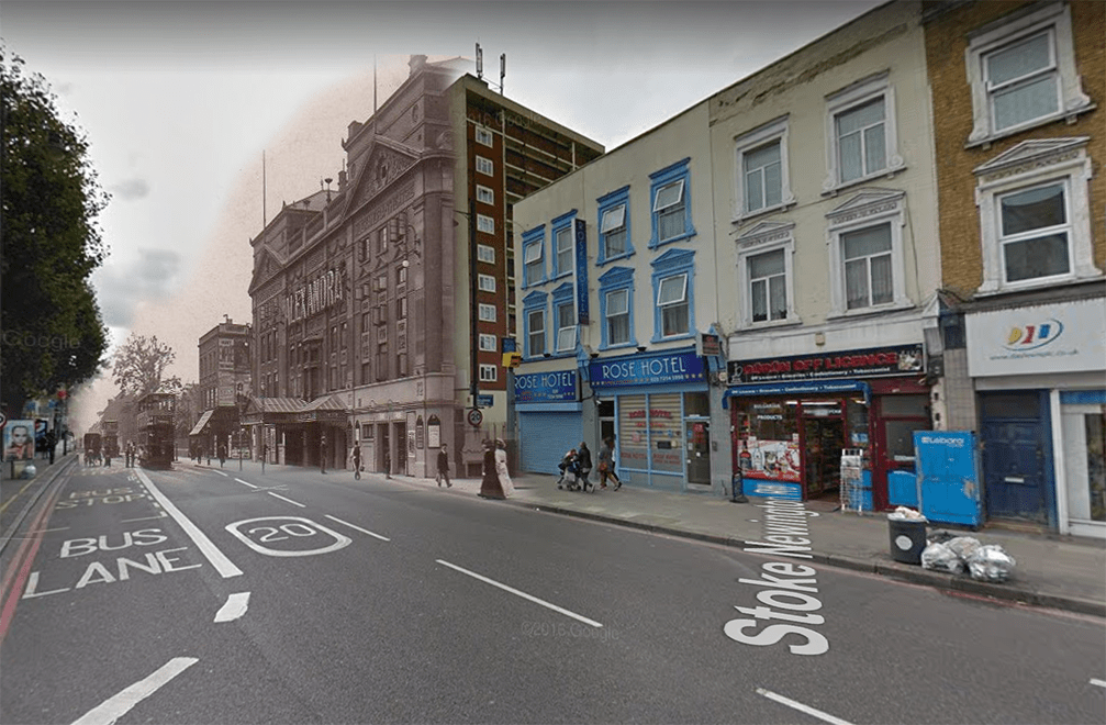 In September 2016, I began a project creating photographic mashups that overlay historical images onto the present-day streetscape of Stoke Newington. This ongoing project aims to blur the boundaries between past and present, enabling viewers to see exactly where and how certain buildings or landmarks once stood within today’s urban environment. By merging old and new images, these mashups offer a unique way to contextualise historical photographs, making it easier to place them within the evolving fabric of the area.